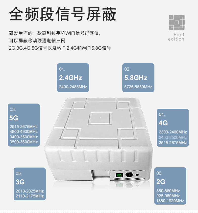 徹底高效屏蔽移動聯(lián)通電信三網(wǎng)2G,3G,4G,5G信號以及WIFI2.4G和WIFI5.8G信號。