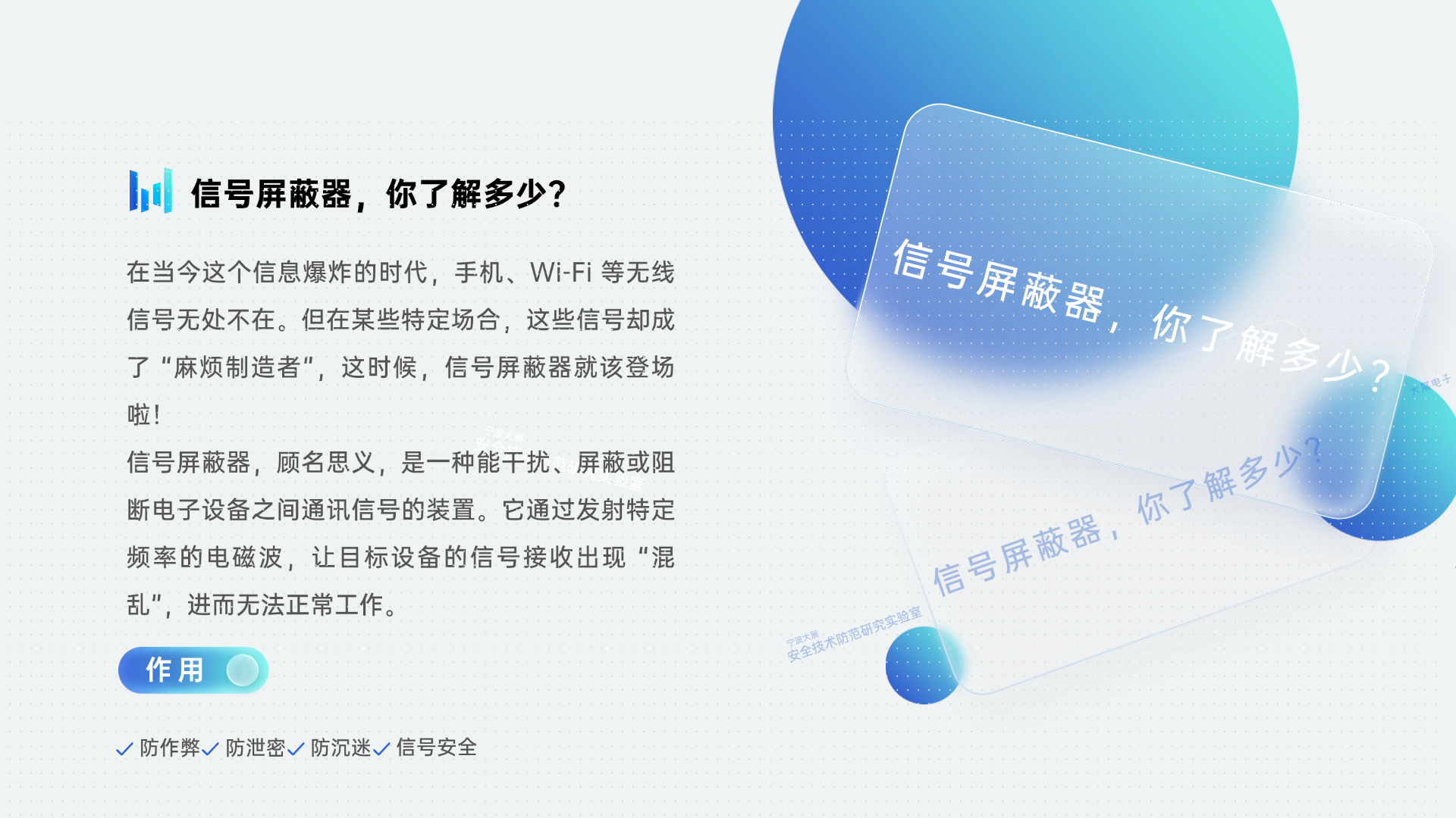 2. WiFi 信號屏蔽器:專門用于屏蔽無線網(wǎng)絡信號,常用于一些需要限制網(wǎng)絡使用的場所,如考場、圖書館等。